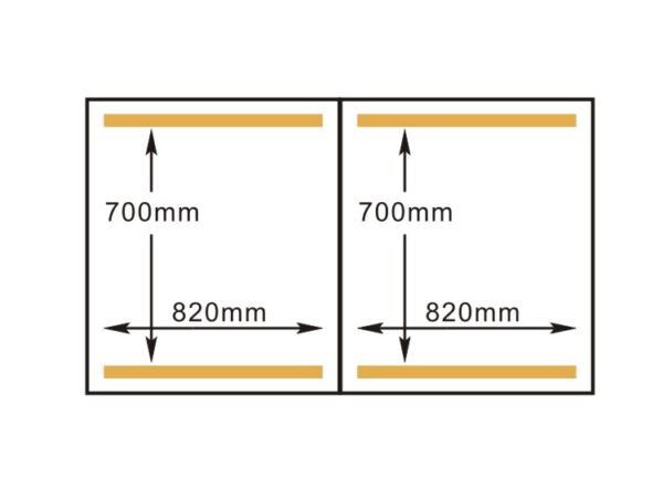 เครื่องซีลสูญญากาศ แบบอุตสาหกรรม ฝาสวิง โดยมีห้องซีล จำนวน 2 ห้อง และมีแถบซีล 4 แถบ แถบละ 820 มม. หรือ 82 ซม.