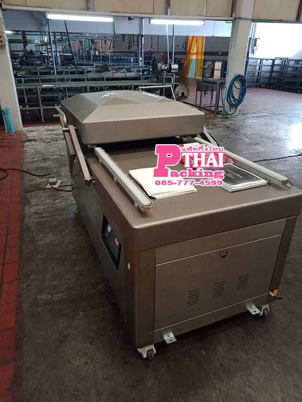 เครื่องซีลสูญญากาศ แบบอุตสาหกรรม โครงสร้างทำด้วยแสตนเลส ทนทาน กันสนิม มีห้องแพ็คสูญญากาศ จำนวน 2 ห้อง มีขนาดแถบซีลยาว 820 mm. หรือ 82 cm. จำนวน 4 แถบซีล มีระบบการตั้งค่าแสดงด้วยระบบดิจิตอล ตั้งค่าการดูดอากาศ การซีล การทำให้เย็น โดยสามารถตั้งค่าได้หลากหลายให้เหมาะสมกับสินค้าและบรรจุภัณฑ์ เหมาะสำหรับการแพ็คข้าวสาร ลูกชิ้น ผัก ผลไม้ อาหาร เป็นต้น เพื่อถนอมอาหาร ยืดอายุอาหารให้เก็บไว้ได้นานมากขึ้น